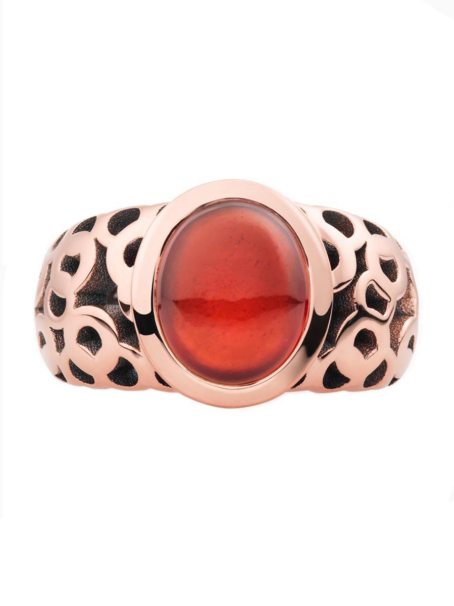 Dit model is onderdeel van de 'Toujours Ajour'-collectie. Deze serie bevat grootse en een tikje extravagante ontwerpen. Deze ring is uitgevoerd in 18 karaat roségoud en bevat een zeer grote Hessoniet. De steen is cabochon geslepen, waardoor de ring een schitterende uitstraling krijgt. De brede scheen van de ring is bewerkt met het iconische ajour-patroon. Om de vinger is de ring nog vele malen mooier dan op beeld en dus zeker de moeite waard om eens te komen passen. Een bijzondere ring voor vrouwen die op zoek zijn naar iets unieks!