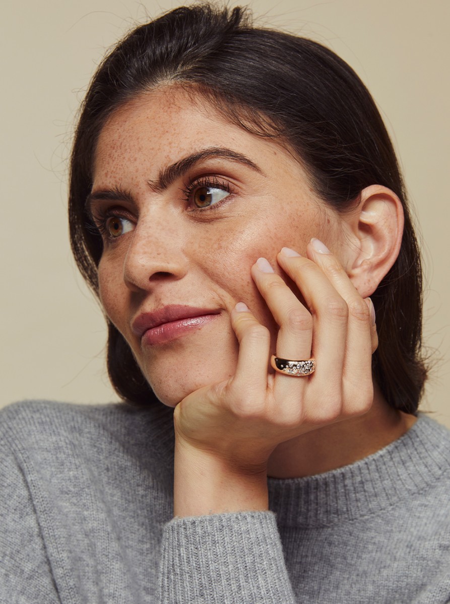 De sieraden van het Nederlandse label BRON staan bekend om hun bijzondere kleurgebruik, hoogwaardige materialen en luxe uitstraling. De ontwerpen worden vervaardigd in 18-karaat wit-, geel- of roségoud en worden vaak gecombineerd met schitterende kleurstenen.