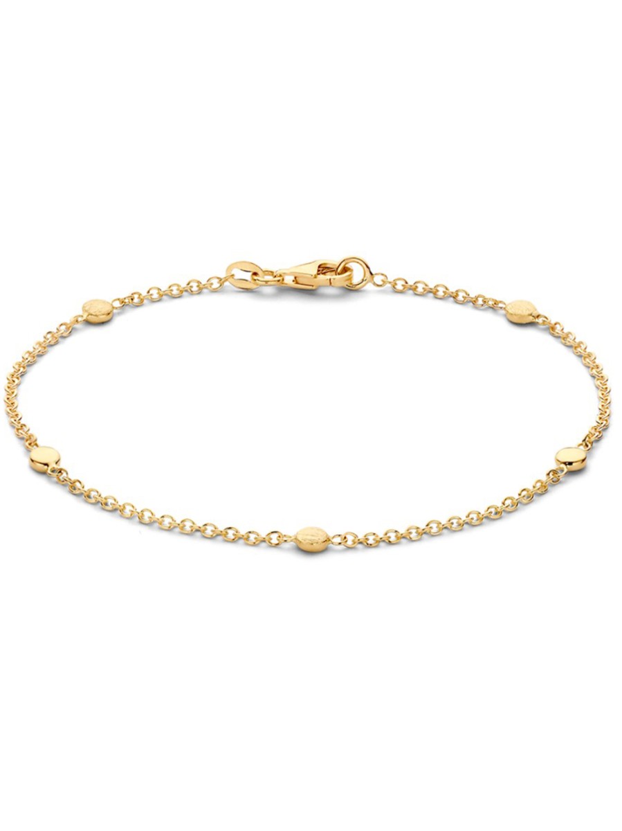 Deze verfijnde, zware amband is vervaardigd uit 14 karaat geelgoud. De armband is opgebouwd uit een sterke ankerschakel en is voorzien van gladde en gematteerde elementen. De armband is 19 centimeter lang en heeft een stevige karabijnsluiting. De armband is bovendien goed te combineren met bijvoorbeeld een geelgouden slavenarmband of een horloge. Kortom; een speelse, verfijnde armband!