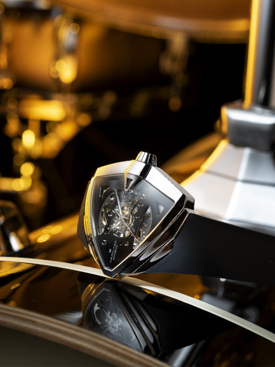 Dit Hamilton herenhorloge hoort bij de Hamilton Ventura serie. Met deze serie eert Hamilton zijn roemrijke verleden. De originele Hamilton Ventura schreef in 1957 namelijk geschiedenis als 's werelds eerste elektrische, op een batterij werkende, horloge. De Hamilton Ventura werd bovendien gedragen door muzikant Elvis Presley, waardoor het horloge enorm populair werd. In de remakes wordt gebruik gemaakt van originele stijldetails, die het horloge een zeer karakteristiek uiterlijk geven.