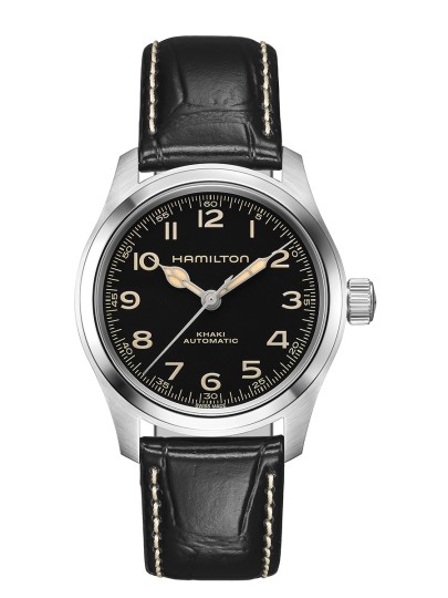 Hamilton-fans hebben geduldig gewacht op deze kleinere uitvoering van de 42mm Khaki Field Murph. Dit model H70405130 is een getrouwe reproductie van het horloge dat in de film Interstellar verscheen om de pols van hoofdpersonage Murph. Deze nieuwe uitvoering heeft een compacte roestvrijstalen kast van 38 millimeter. Op de zwarte wijzerplaat zijn beige Super-LumiNova®-wijzers in vintage-stijl zichtbaar. De edelstalen band blijft trouw aan de toonaangevende stijlkenmerken van zijn voorganger. De 38 mm Khaki Field Murph wordt aangedreven door het H-10 automatische uurwerk met een gangreserve van 80 uur, zichtbaar via de achterzijde van de kast.