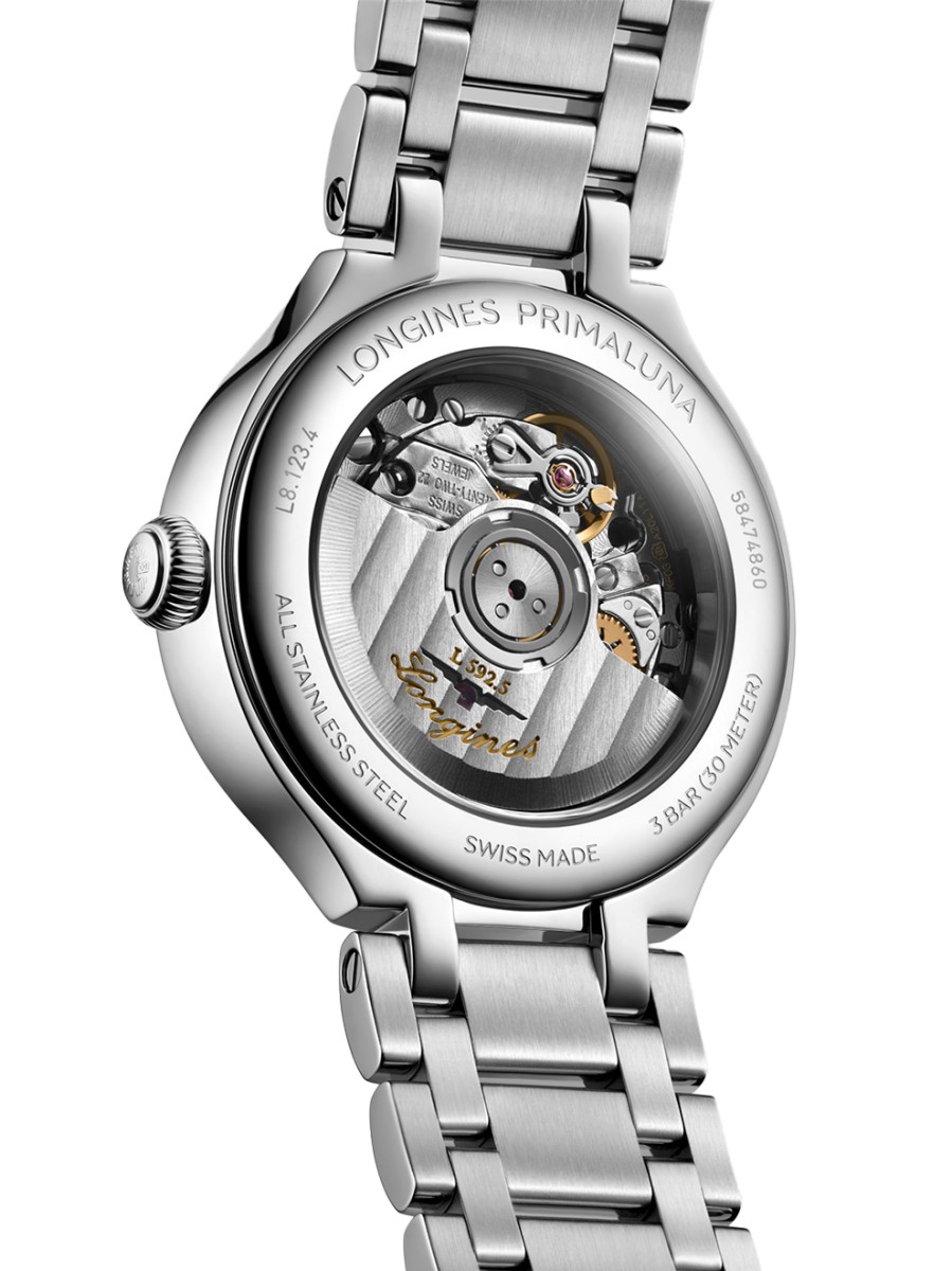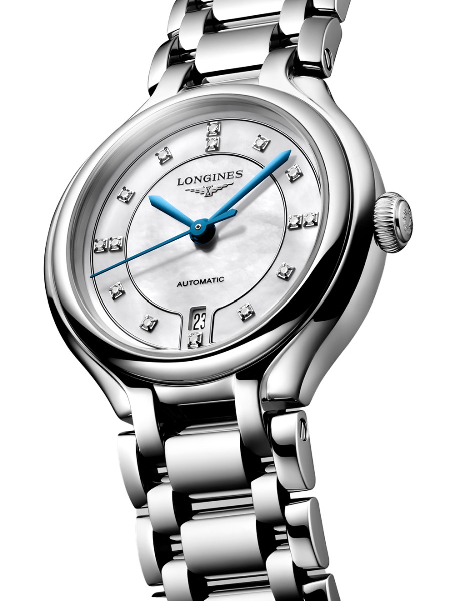 Dit dameshorloge met automatisch uurwerk hoort bij de Longines PrimaLuna serie. Met deze lijn dameshorloges brengt het merk een ode aan de betoverende maan. De horloges hebben zachte vormen, een ronde kast en zijn gemaakt van edelstaal, vaak gecombineerd met (rosé)goud en glinsterende diamanten.