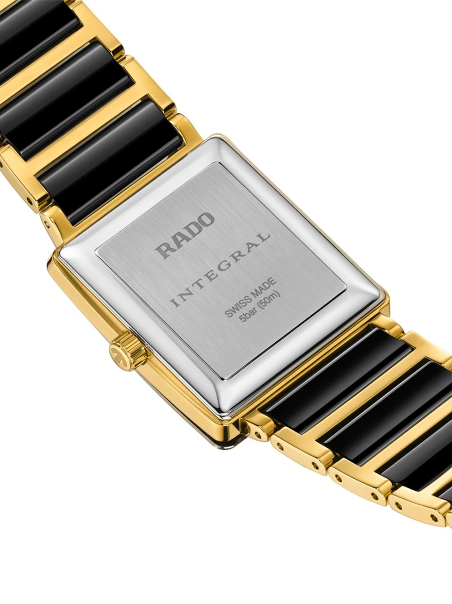 Dit dameshorloge valt onder de elegante Integral serie. Deze opvallende lijn bestaat al sinds 1986 en was de eerste waarin high-tech keramiek RADO hightech keramiek verwerkte. Deze revolutie in horlogeland bracht ons prachtige Integral modellen waarbij grafische lijnen, bijzondere technologieën en hoogwaardig materiaal centraal staan. De horloges zijn zodoende uitgevoerd met krasarme saffierglazen en high-tech keramische banden. Het draagcomfort is hoog, want de soepele schakelband valt perfect om de pols en is voorzien van een lichte titanium sluiting.