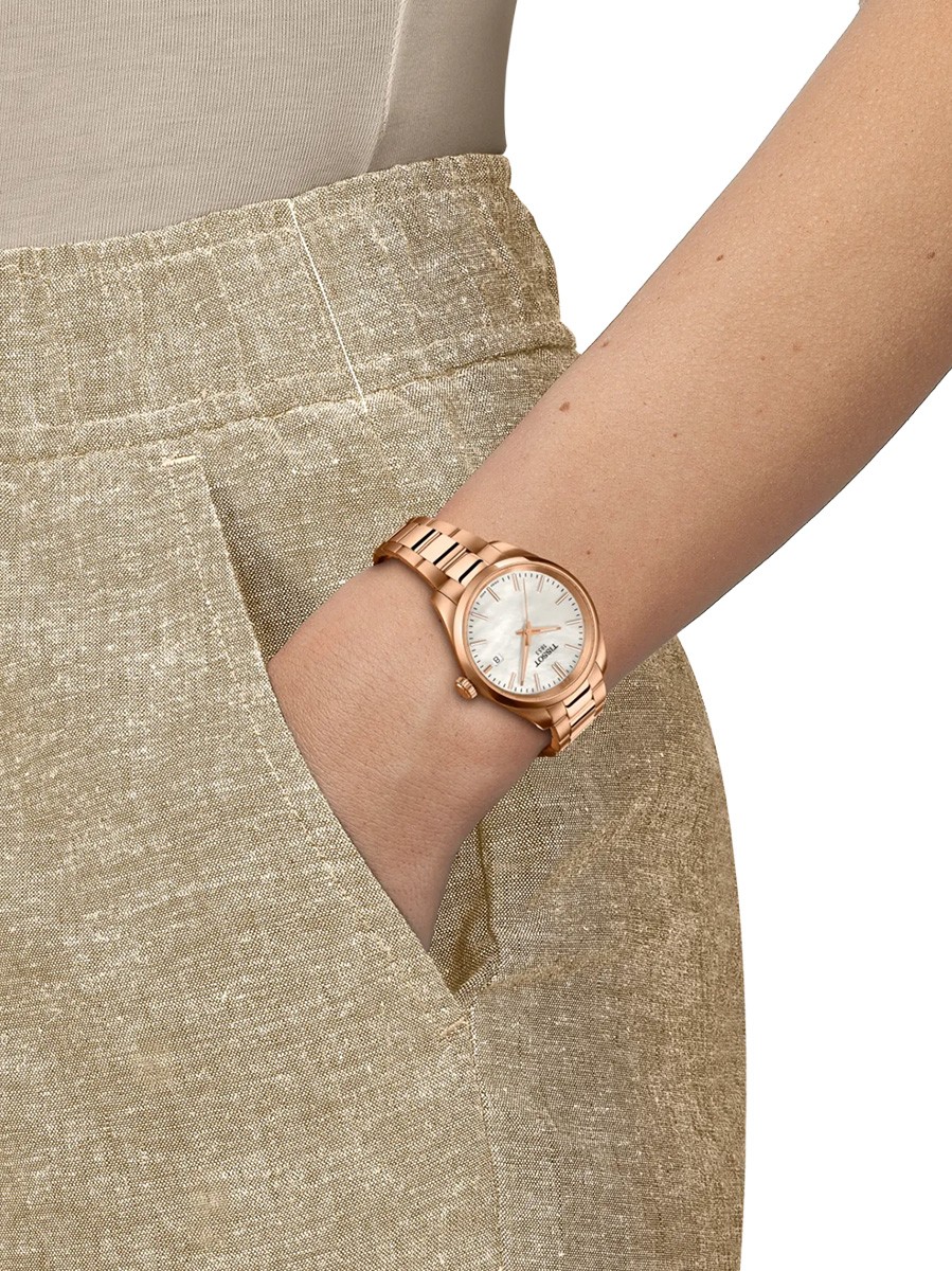 Dit stijlvolle dameshorloge is onderdeel van de PR 100 serie. Deze lijn bevat zowel dames- als herenhorloges van hoge kwaliteit met een sportieve uitstraling. Dit horloge heeft een saffierglas en is tot maar liefst 100 meter waterdicht. Het horloge heeft een rosé-plated stalen kast (34mm) en een edelstalen schakelband. Op de parelmoer wijzerplaat zijn oplichtende wijzers en een duidelijke datumaanduiding te zien. De T150.210.33.111.00 is perfect voor dames die op zoek zijn naar een kwalitatief, opvallend en draagbaar polshorloge.